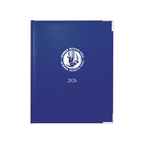 This A5 horse racing diary for 2026 is perfectly sized for daily use. Features a classic blue cover with metal corners and includes: • All UK racing fixtures • Point-to-points, international races & sporting events • Size: 21cm x 14.8cm • Made in the UK • Available from October (pre-order today). A practical diary for racing fans, supporting injured jockeys and their families. Made in the UK.