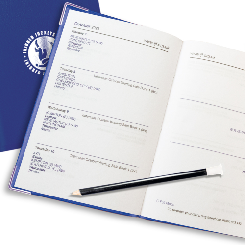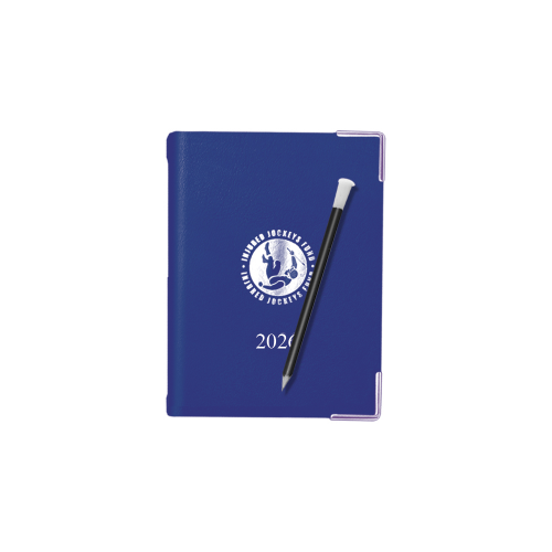 Take horse racing everywhere with this pocket-sized 2026 horse racing diary. Features a durable blue cover with metal corners and includes: • All UK racing fixtures • Point-to-points, international races & sporting events • Size: 12cm x 8cm • Made in the UK • Available October (pre-order today). Compact, practical, and supports the Injured Jockeys Fund. Made in the UK.