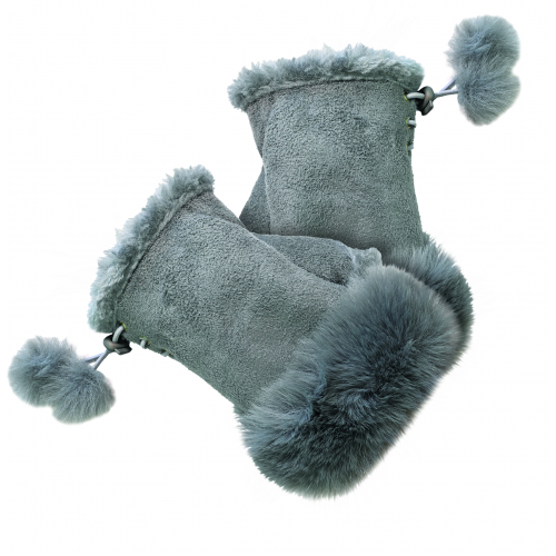 Grey faux suede fingerless gloves with synthetic fur trim. Great for keeping your hands warm whilst able touse your fingers.  Very fashionable and excellent value.