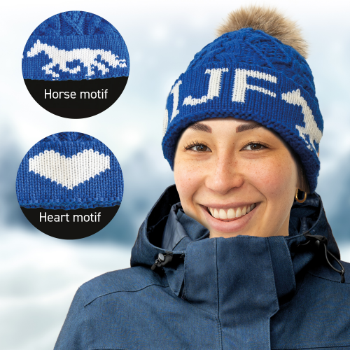 Royal Blue Pompom Hat – IJF Equestrian Winter Hat
