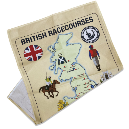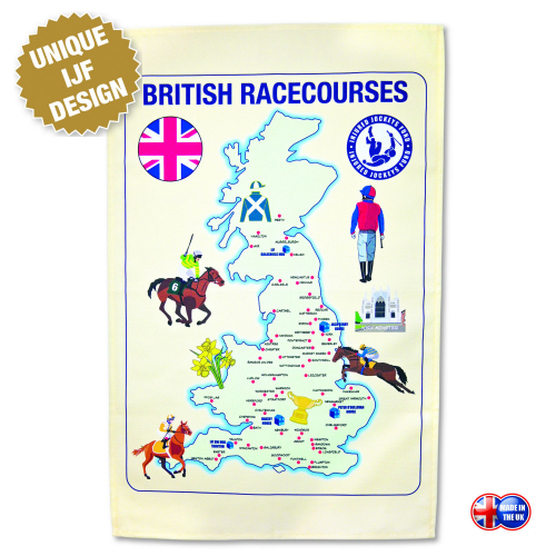 Tea Towel with IJF 'UM Racecourse Map' design. 220g unbleached panama. 100% cotton. 50cm x 70cm. Made in the UK.